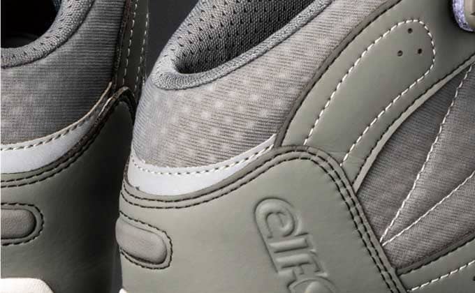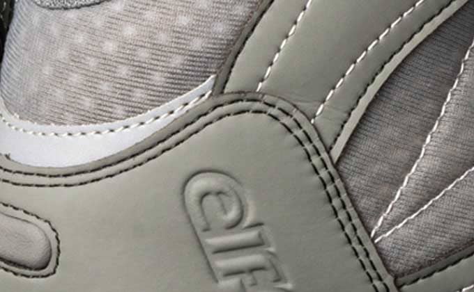 甲皮には、天然皮革なみのソフトな風合いを持つ、人工皮革「クラリーノ」(クラレ製)を採用。