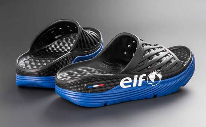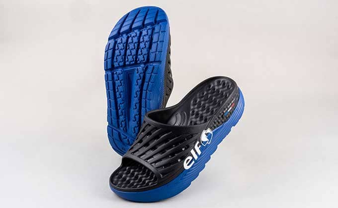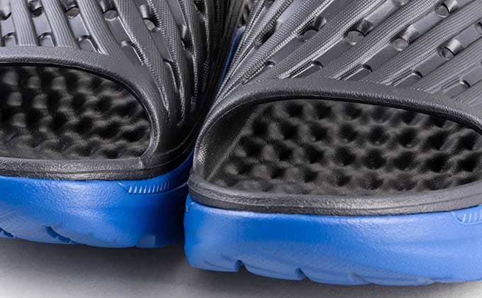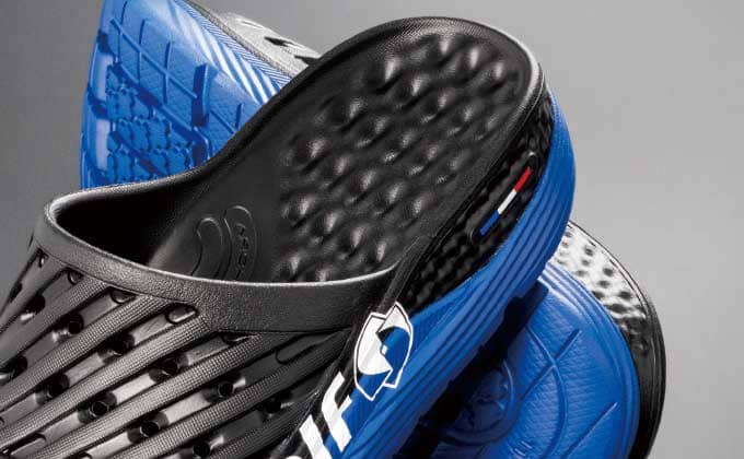 耐久性の高い耐摩耗性EVAと滑りにくいアウトソール形状を採用